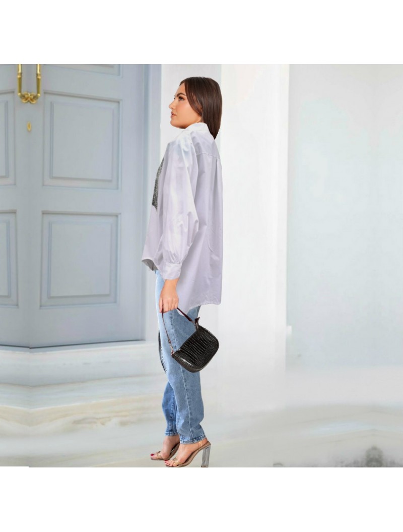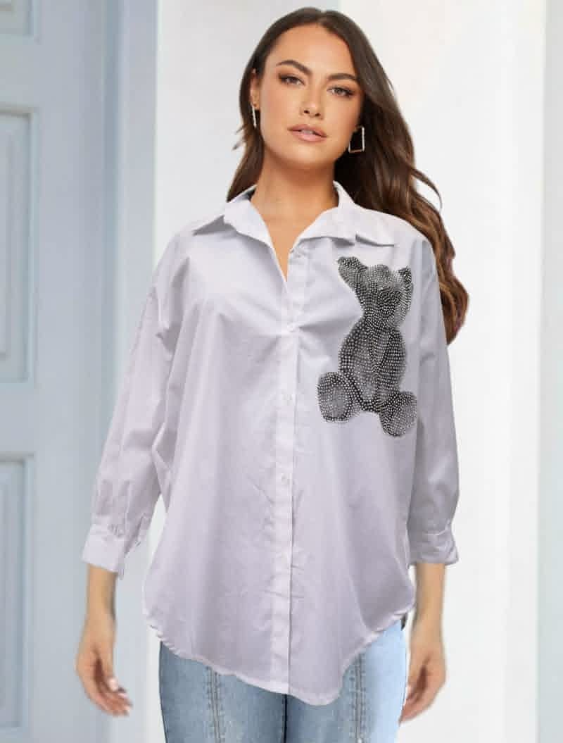 Μειωμένη Τιμή! White Oversized shirt with strass bear Προβολη μεγαλύτερων