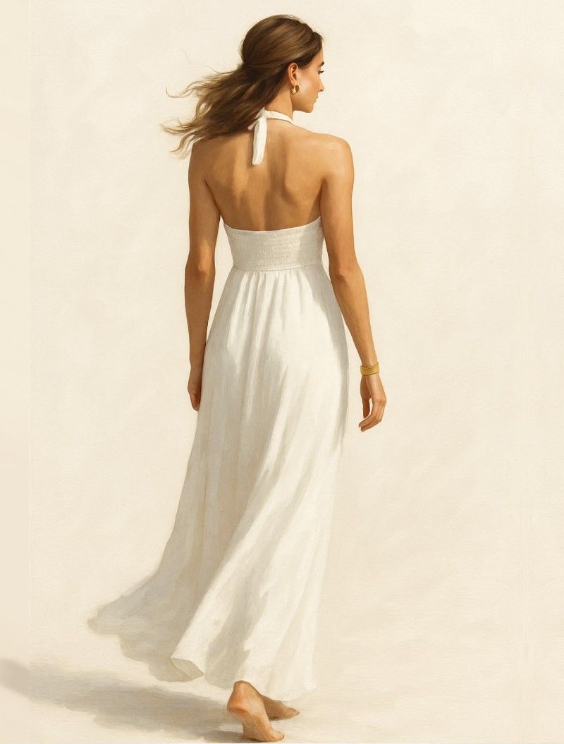 Το σχέδιο βελονάκι με περίτεχνα μοτίβα στη μέση είναι το κεντρικό χαρακτηριστικό αυτού του φορέματος,που του προσθέτει μια χειροποίητη, καλλιτεχνική νότα.