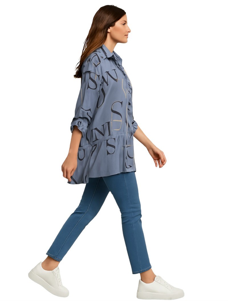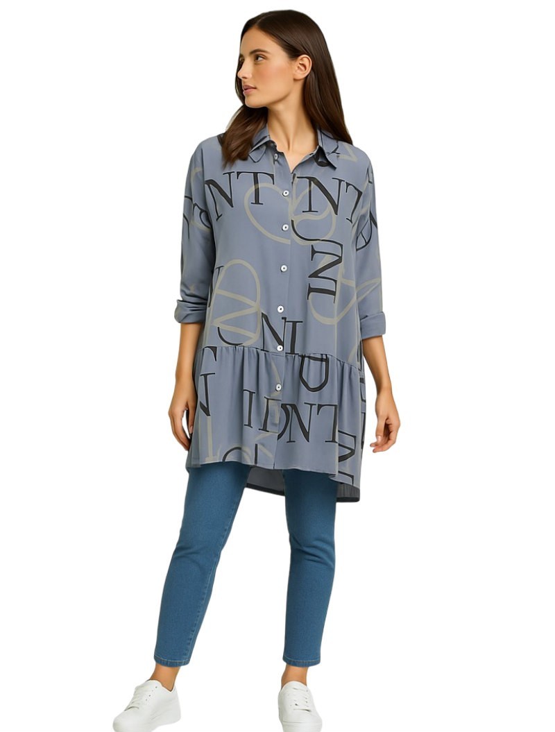 Ένα κομψό και μοντέρνο πουκάμισο με ασύμμετρο κόψιμο(μακρύτερο το πίσω μέρος)και χαλαρή άνετη γραμμή.