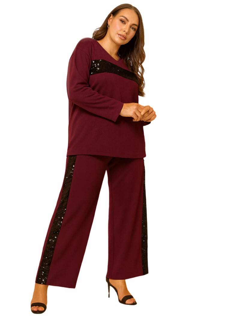 ● Άνετη παντελόνα με λάστιχο και sequin stripes