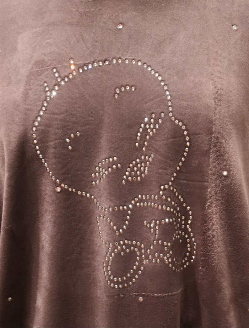 ● Loose μπλούζα με U και κορδόνι στο τελείωμα, στολισμένη με στρας μοτίφ