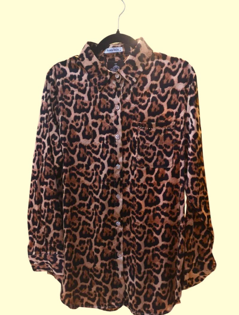 Η απαλή σατέν υφή χαρίζει πολυτελή λάμψη, ενώ το δυναμικό leopard print δημιουργεί μια statement εμφάνιση για κάθε στιγμή της ημέρας.