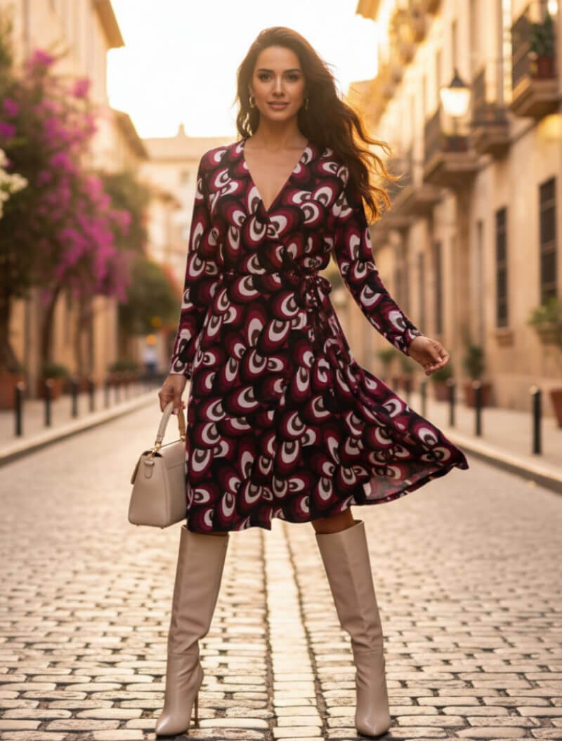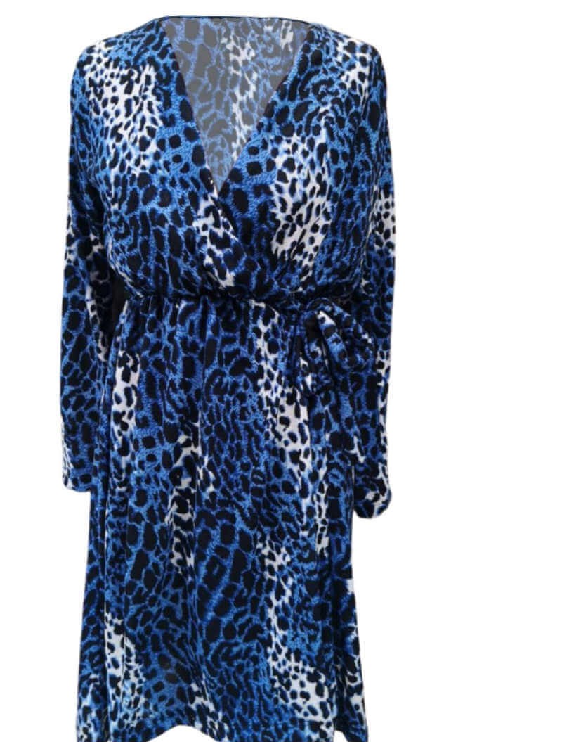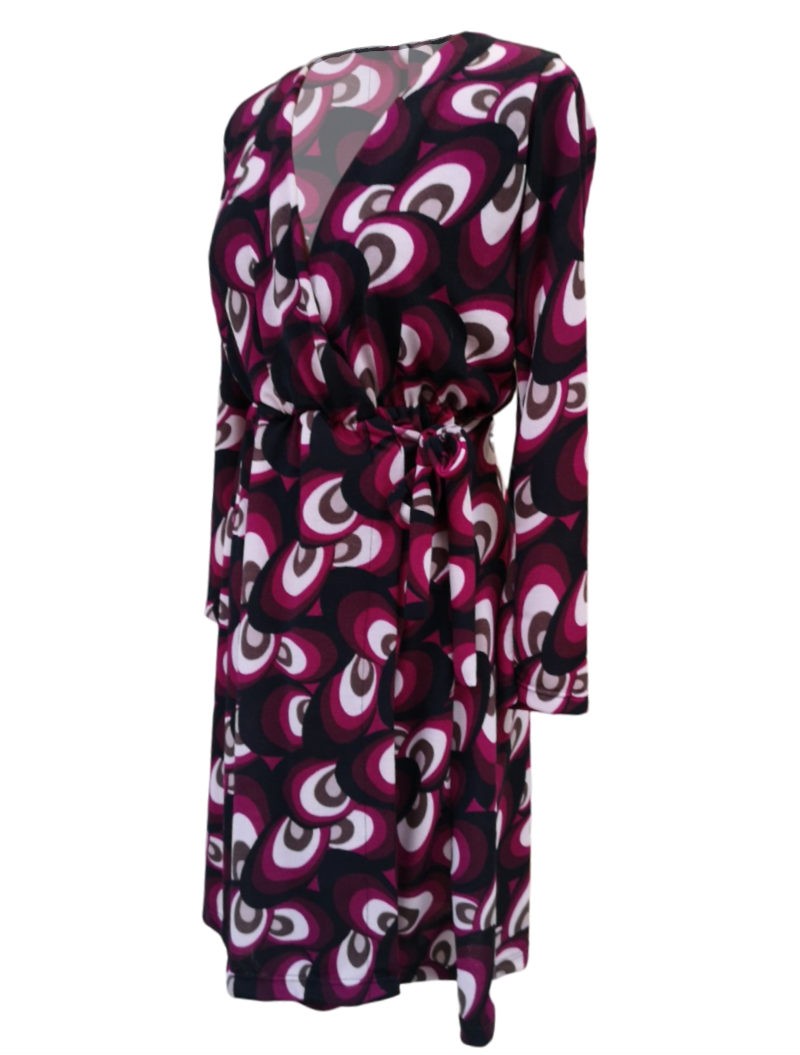 Εντυπωσιακό φόρεμα με ιδιαίτερο μοτίβο,που τραβά τα βλέμματα και κολακεύει κάθε σιλουέτα.Διαθέτει V ντεκολτέ και σταυρωτό wrap σχέδιο με δέσιμο στη μέση, προσφέροντας άψογη εφαρμογή και άνεση.